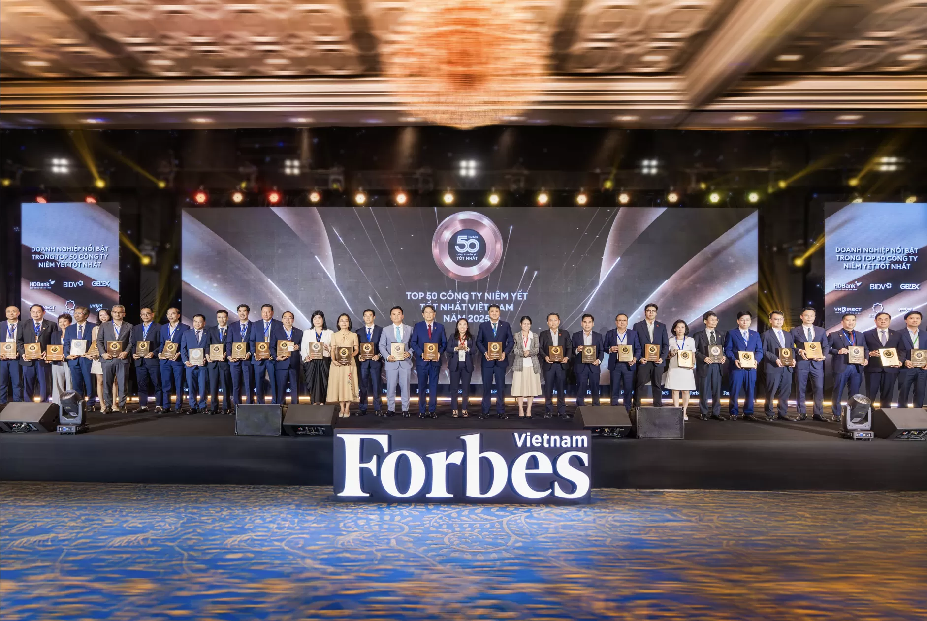 Tổng công ty Phân bón và Hóa chất Dầu khí (Phú Mỹ - PVFCCo, mã chứng khoán: DPM) vừa xuất sắc đạt danh hiệu kép "Top 50 công ty niêm yết tốt nhất Việt Nam" năm 2025 do Forbes Việt Nam tổ chức đánh giá. Đặc biệt, PVFCCo đã xuất sắc nằm trong vào Top 10 Doanh nghiệp nổi bật nhất của bảng xếp hạng danh giá này. Ngoài ra, Phú Mỹ cũng doanh nghiệp phân bón duy nhất được bình chọn “Top 25 Thương hiệu dẫn đầu trong ngành công nghiệp sản xuất và dịch vụ”.