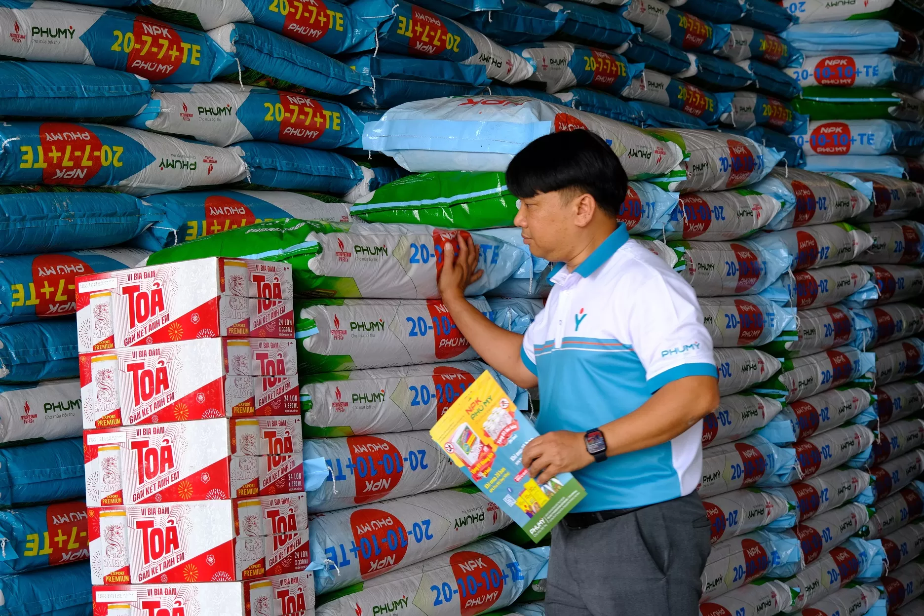 Theo đó, từ nay đến hết ngày 31/03/2026, hoặc đến khi hết quà tặng (tùy điều kiện nào đến trước), khi mua các dòng sản phẩm NPK Phú Mỹ đóng bao 50kg, 25kg sẽ được nhận quà tặng là bia lon Sài Gòn Export Premium theo cơ cấu là: Khi mua 5 bao (50 kg/bao) sản phẩm NPK Phú Mỹ hoặc khi mua 10 bao (25 kg/bao) sản phẩm NPK Phú Mỹ tặng 01 lốc bia Sài Gòn Export Premium (6 lon 330ml); Hoặc Khi mua 20 bao (50 kg/bao) sản phẩm NPK Phú Mỹ hoặc khi mua 40 bao (25 kg/bao) sản phẩm NPK Phú Mỹ tặng 01 thùng bia Sài Gòn Export Premium (24 lon 330ml). Chương trình áp dụng tại các điểm bán thuộc hệ thống phân phối do Phú Mỹ công bố tại các tỉnh từ Đà Nẵng trở vào đến Cà Mau, có dán áp phích, tờ rơi về chương trình.
