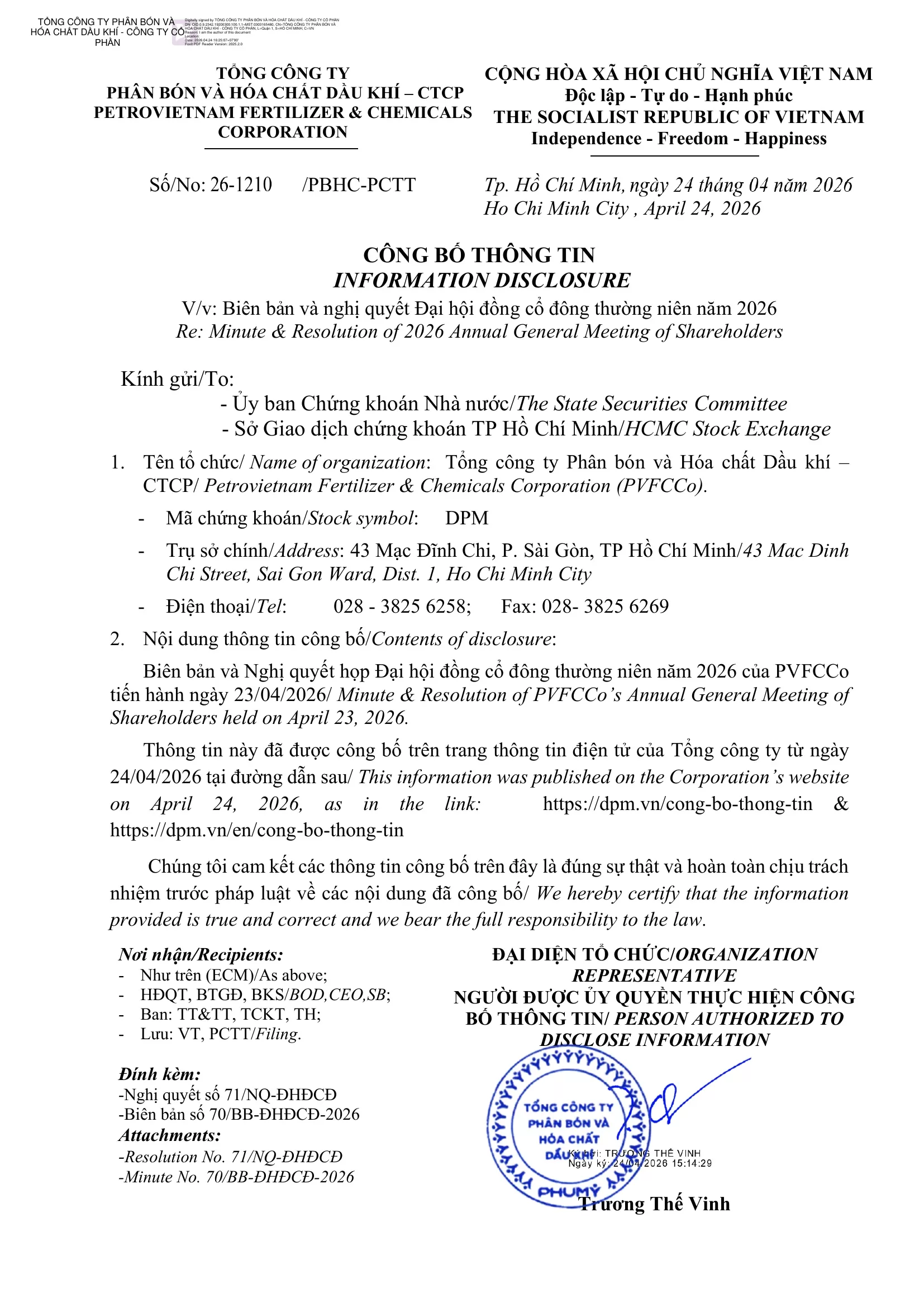 | 1 | Biên bản và nghị quyết phiên họp ĐHĐCĐ thường niên năm 2026 |