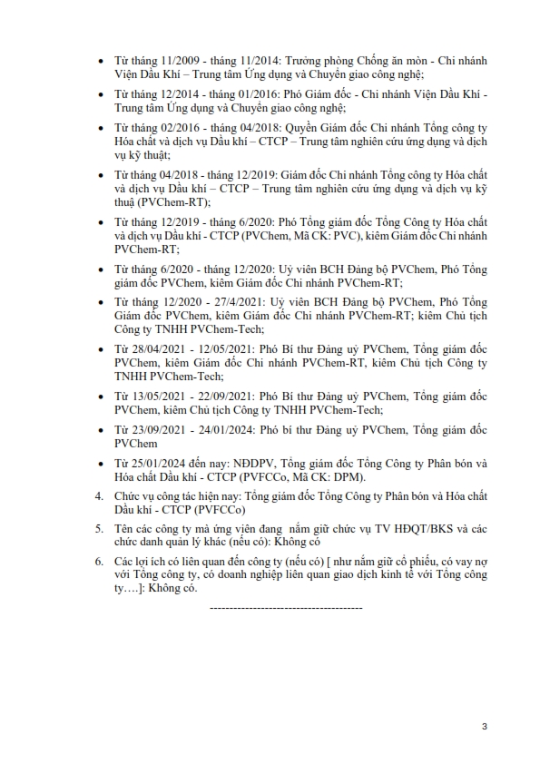 Kính gửi Quý Cổ đông Tổng công ty Phân bón và Hóa chất Dầu khí – CTCP
