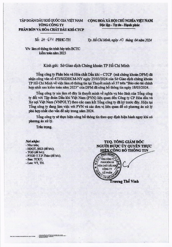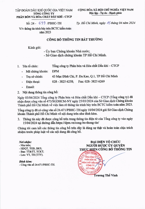 Công bố thông tin: Thông tin trình bày trên BCTC kiểm toán năm 2023