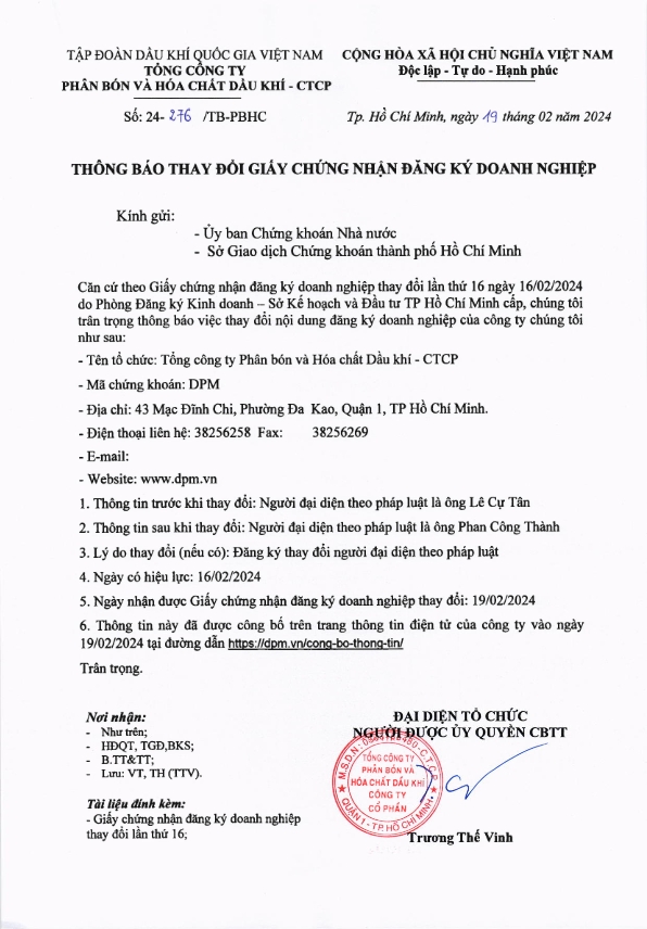 Thông báo thay đổi giấy chứng nhận đăng ký doanh nghiệp
