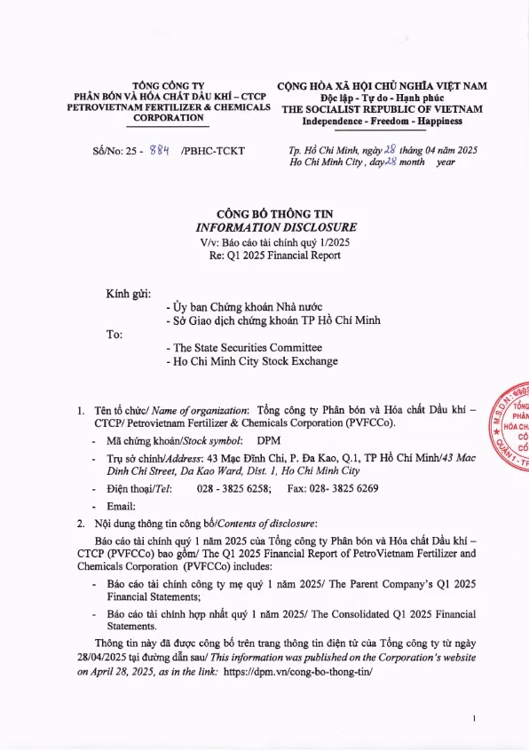 Information Disclosure: 1st Quarter 2025 - Financial Report