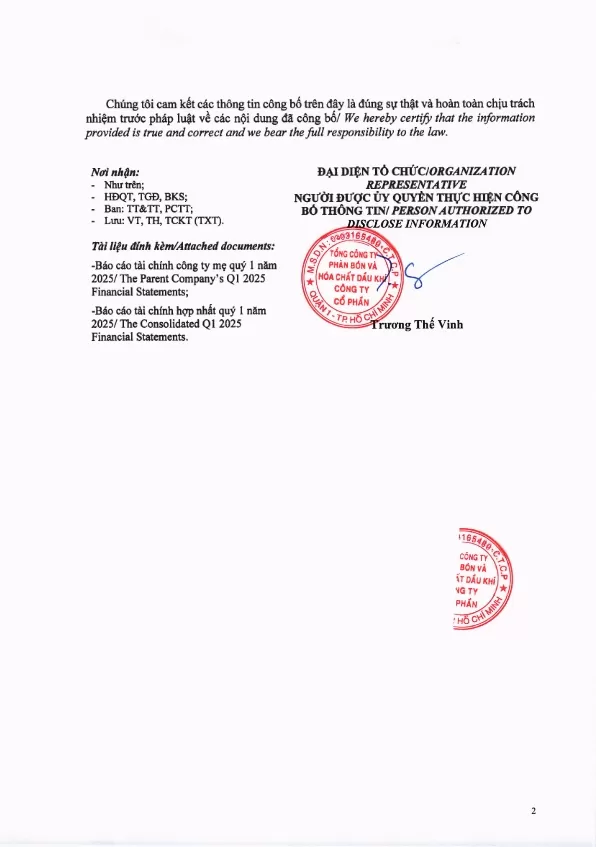 | 1 | Parent Company Financial Statements for Q1 2025 |