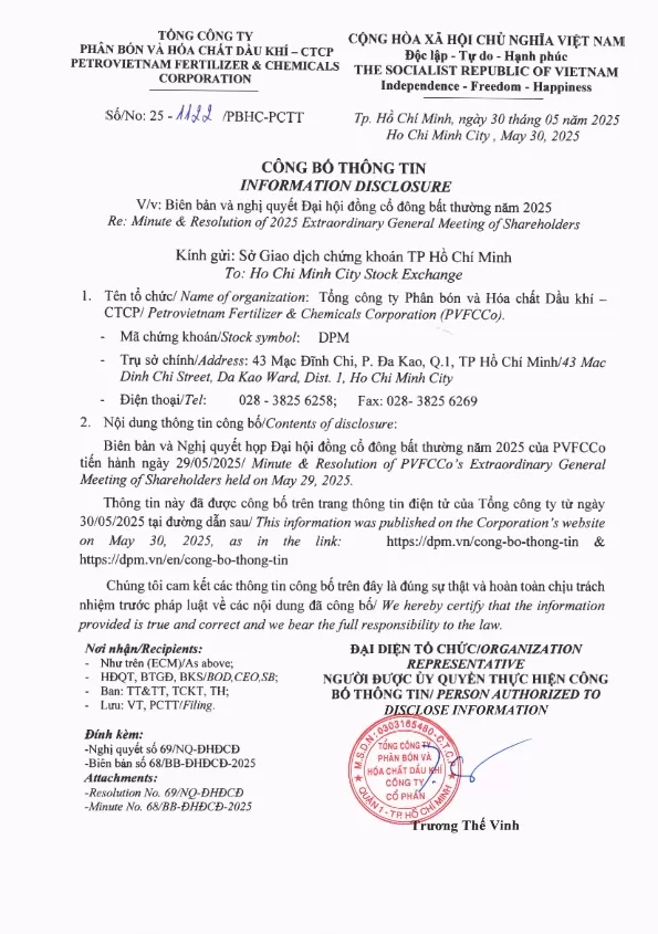 Information Disclosure: Minute & Resolution of 2025 Extraordinary General Meeting of Shareholders