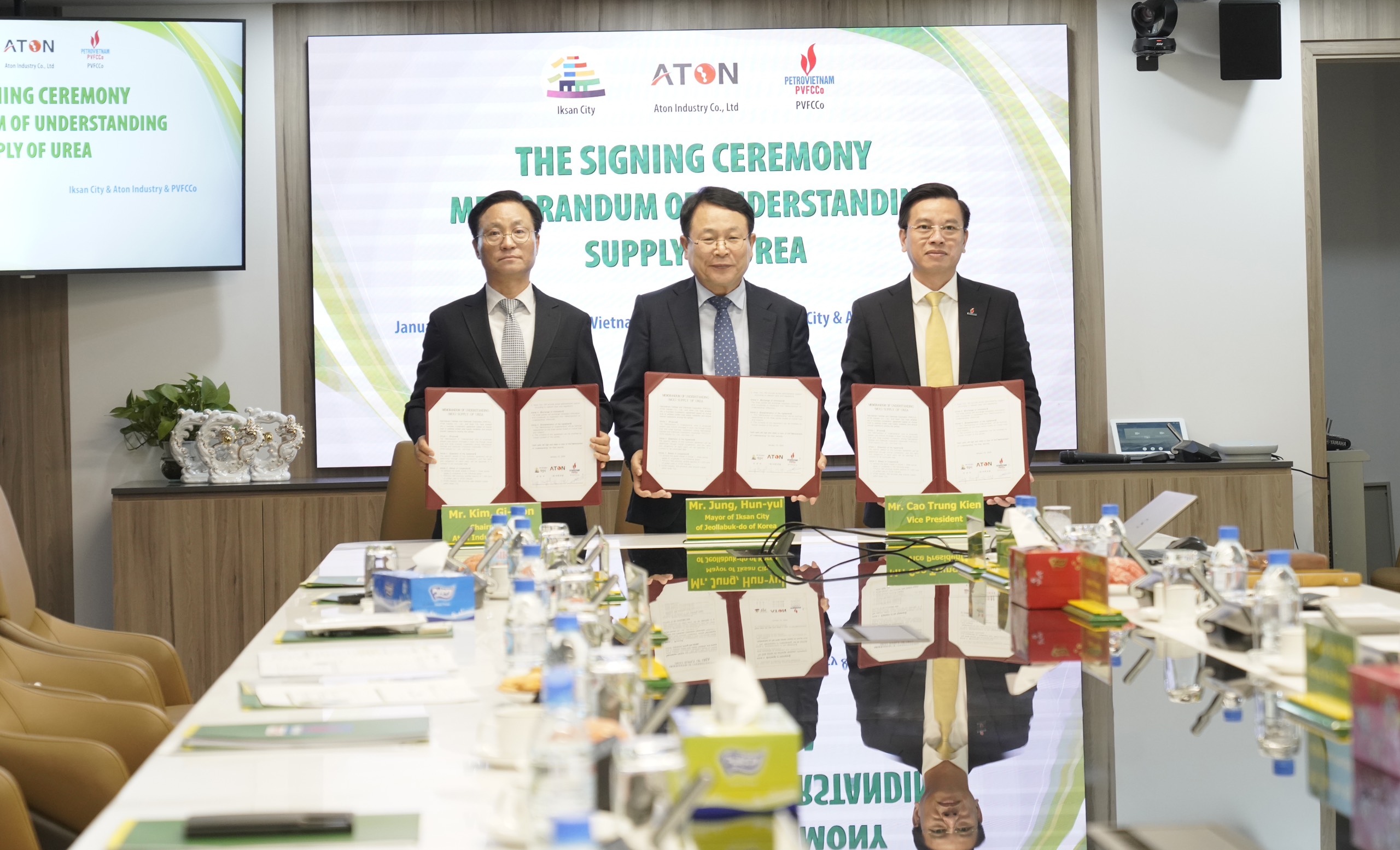 On January 23, 2024, at the headquarters of the PetroVietnam Fertilizer and Chemicals Corporation (PVFCCo), PVFCCo, along with representatives from the Iksan city government (Jeollabuk province, South Korea), and Aton Industry Company (South Korea), signed a Memorandum of Understanding (MoU) regarding the supply of Urea.