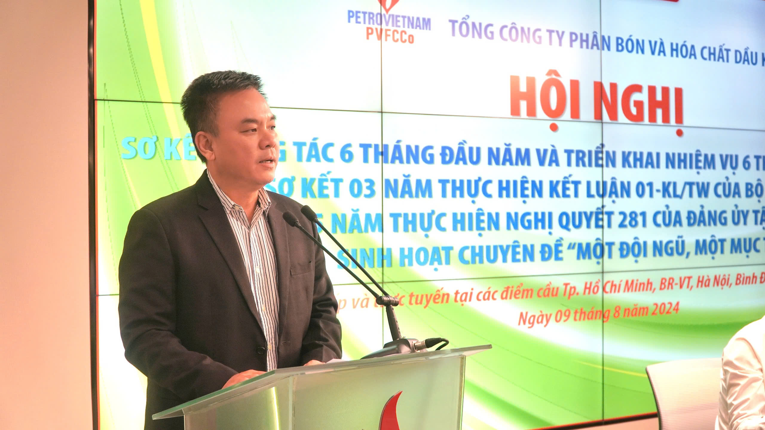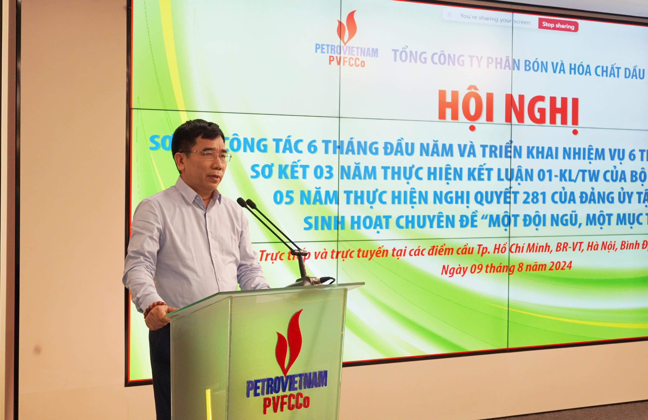 On August 9, 2024, PetroVietnam Fertilizer and Chemicals Corporation (PVFCCo) held a conference to review Party work, production, and business in the first 6 months of 2024; review 3 years of implementing Conclusion No. 01 of the Politburo on continuing to implement Directive 05; 5 years of implementing Resolution 281 of the Group’s Party Committee; 2 years of implementing Resolution 272 of the Corporation’s Party Committee and a thematic meeting entitled “One Team – One Goal.”