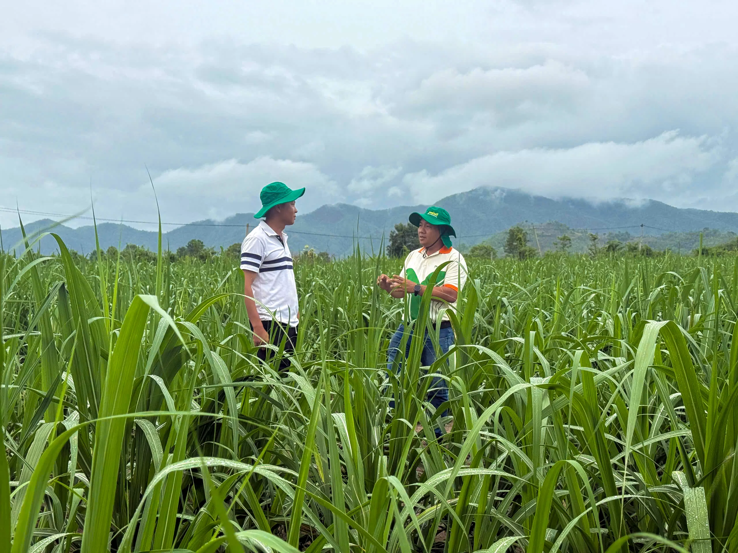 Cán bộ thị trường Phú Mỹ trực tiếp tư vấn tại ruộng mía, hướng dẫn nông dân ứng dụng sản phẩm Phú Mỹ- giúp cây mía phát triển khỏe, tăng vị ngọt tự nhiên, kháng sâu bệnh hiệu quả mà không lệ thuộc thuốc BVTV.