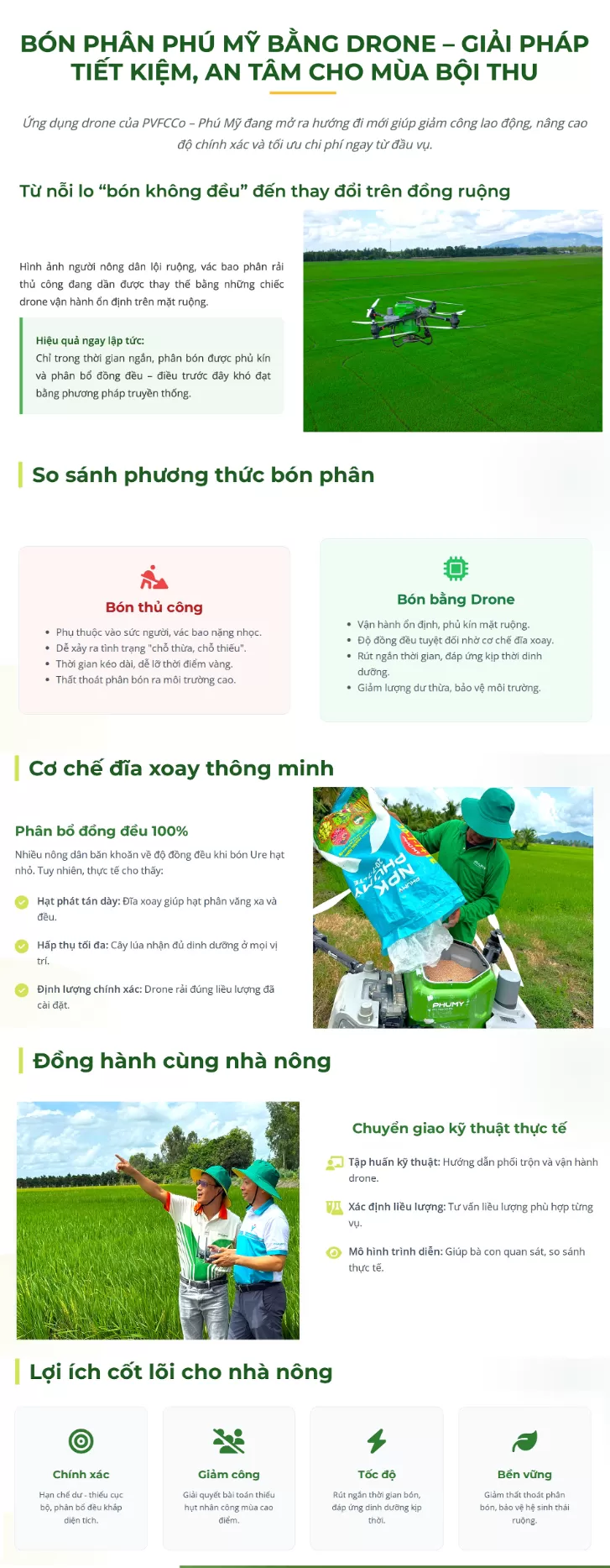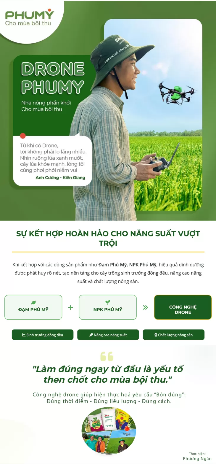 Bón Phân Phú Mỹ bằng Drone - Giải pháp tiết kiệm, an tâm cho mùa bội thu