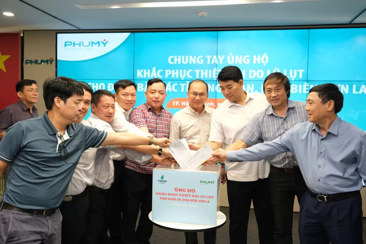 Cuối tháng 7 và đầu tháng 8 vừa qua, tình hình bão, lũ tại các tỉnh miền Bắc đã gây ra nhiều thiệt hại nặng nề, bao gồm thiệt hại về người, tài sản và cơ sở hạ tầng. Theo thống kê, thiên tai đã khiến 14 người thiệt mạng, gây thiệt hại gần 4.000 tỷ đồng, hàng nghìn hộ dân mất nhà cửa, đời sống gặp muôn vàn khó khăn. Với truyền thống tương thân tương ái, tinh thần “lá lành đùm lá rách”, văn hóa “sẻ chia” và trách nhiệm xã hội của người lao động PVFCCo – Phú Mỹ, Ban lãnh đạo Tổng công ty và Công đoàn Tổng công ty đã kêu gọi toàn thể CBCNV, người lao động tích cực ủng hộ để góp phần chia sẻ khó khăn, giúp bà con sớm ổn định cuộc sống.