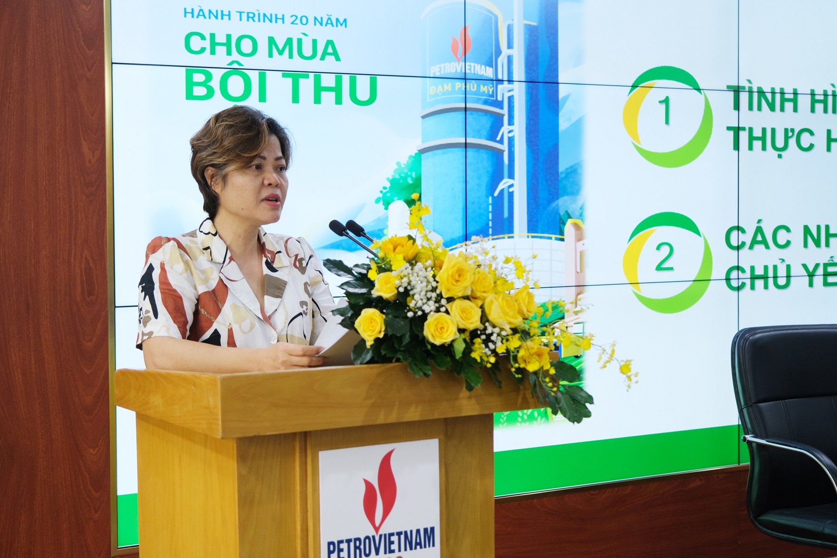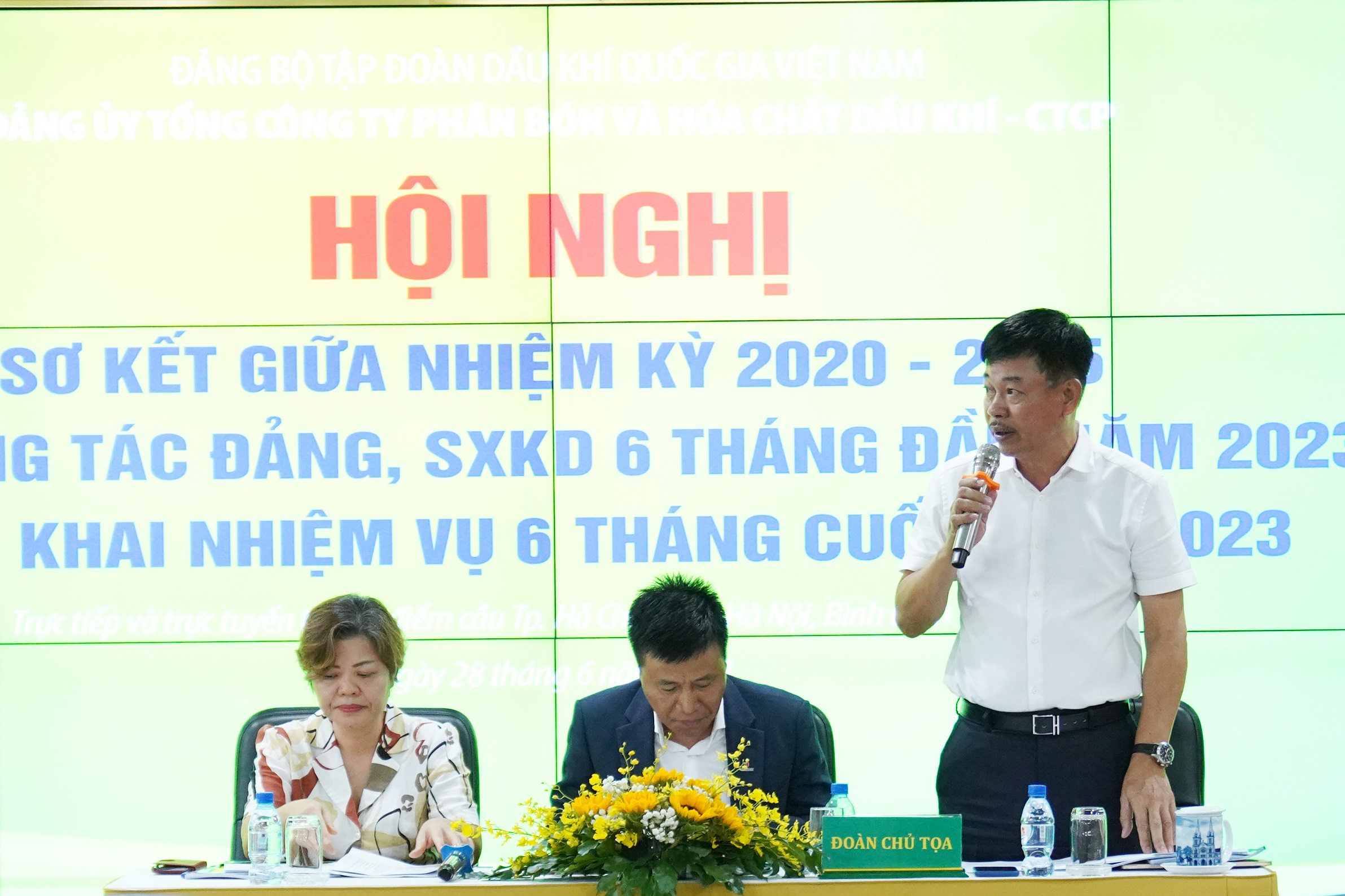 Tại Hội nghị, nhằm đóng góp ý kiến cho các báo cáo, cũng như đưa ra các giải pháp chủ yếu thực hiện nửa cuối nhiệm kỳ còn lại, đại diện Đảng ủy Nhà máy Đạm Phú Mỹ đã trình bày tham luận về “Vai trò của Đảng trong việc lãnh đạo triển khai thực hiện văn hóa doanh nghiệp tại Nhà máy Đạm Phú Mỹ, đảm bảo vận hành sản xuất ổn định, liên tục, hiệu quả” và tham luận “Phát huy vai trò của Đảng trong việc lãnh đạo triển khai thực hiện công tác tái cơ cấu giai đoạn 2020-2023 và những giải pháp thực hiện đến 2025” của đại diện Đảng ủy cơ quan TCT.