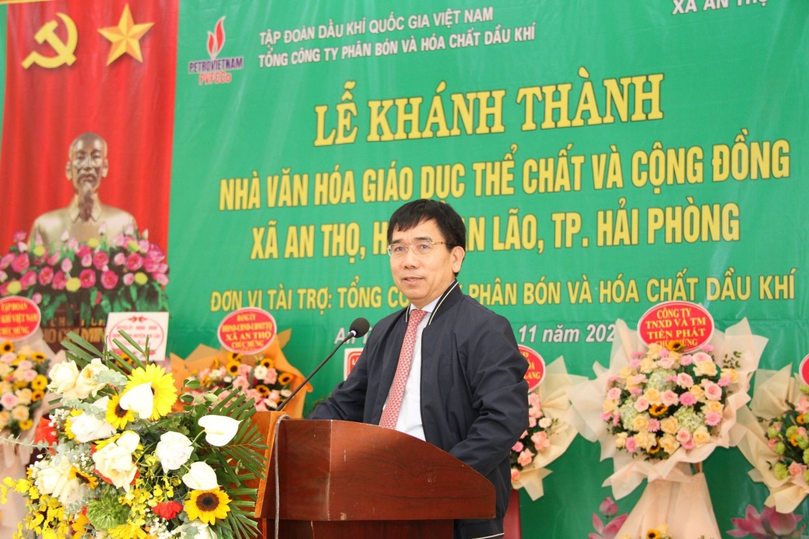 Phó Tổng Giám đốc Petrovietnam tin tưởng công trình Nhà văn hóa giáo dục thể chất và cộng đồng sẽ góp phần thiết thực vào sự phát triển của địa phương, giúp nhân dân có thêm địa điểm tổ chức các buổi sinh hoạt văn hóa, cộng đồng ý nghĩa, nâng cao đời sống văn hóa tinh thần, tạo cuộc sống vui khỏe cho bà con nhân dân. Thay mặt cho chính quyền và nhân dân địa phương, bà Ngô Thị Thanh Thủy – Chủ tịch UBND huyện An Lão đã gửi lời cảm ơn chân thành đến lãnh đạo Petrovietnam và PVFCCo đã dành sự quan tâm, hỗ trợ cho bà con nhân dân địa phương, đồng thời mong muốn trong thời gian tới các doanh nghiệp dầu khí sẽ tiếp tục quan tâm, hỗ trợ công tác ASXH tại địa phương.