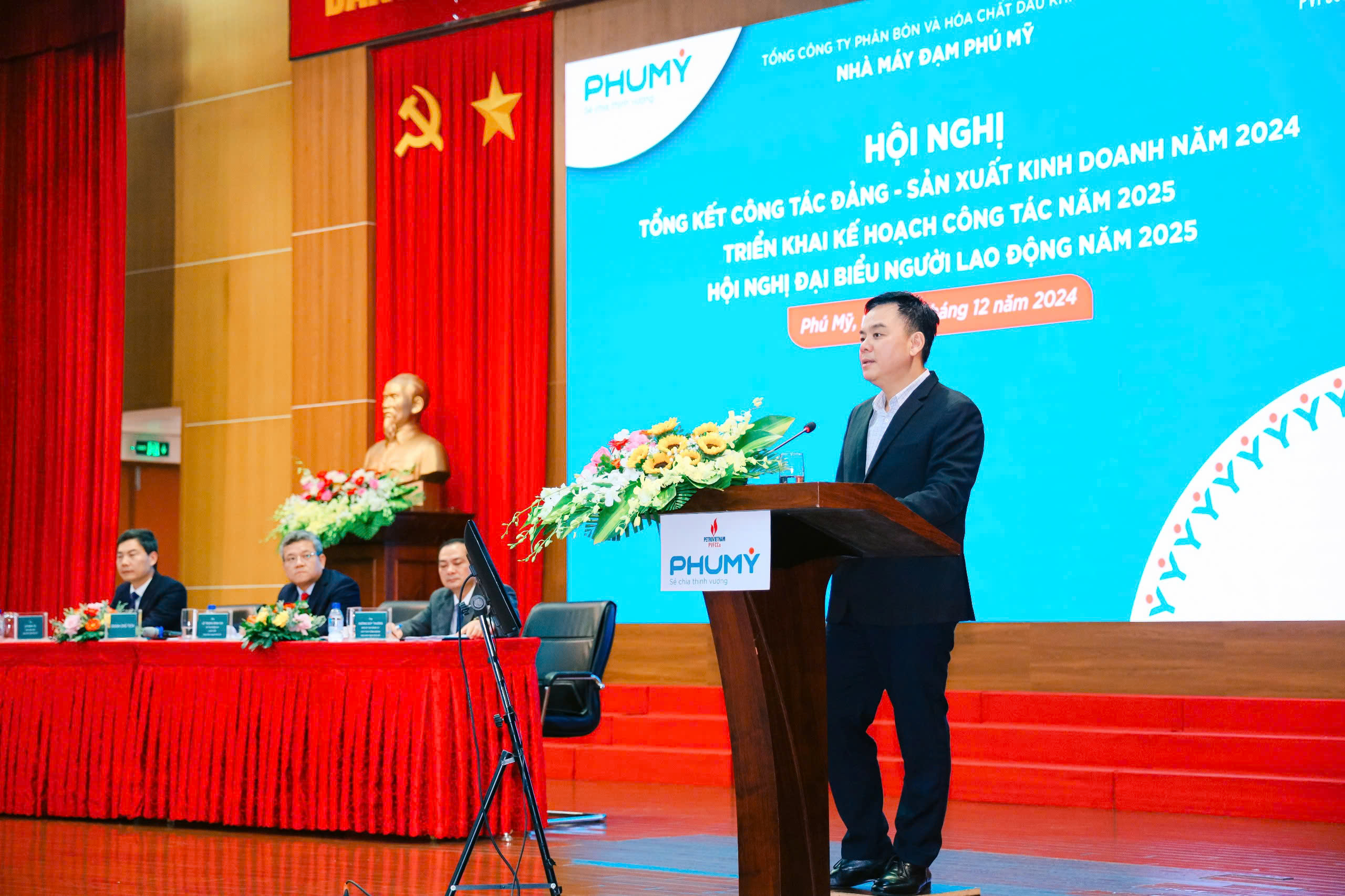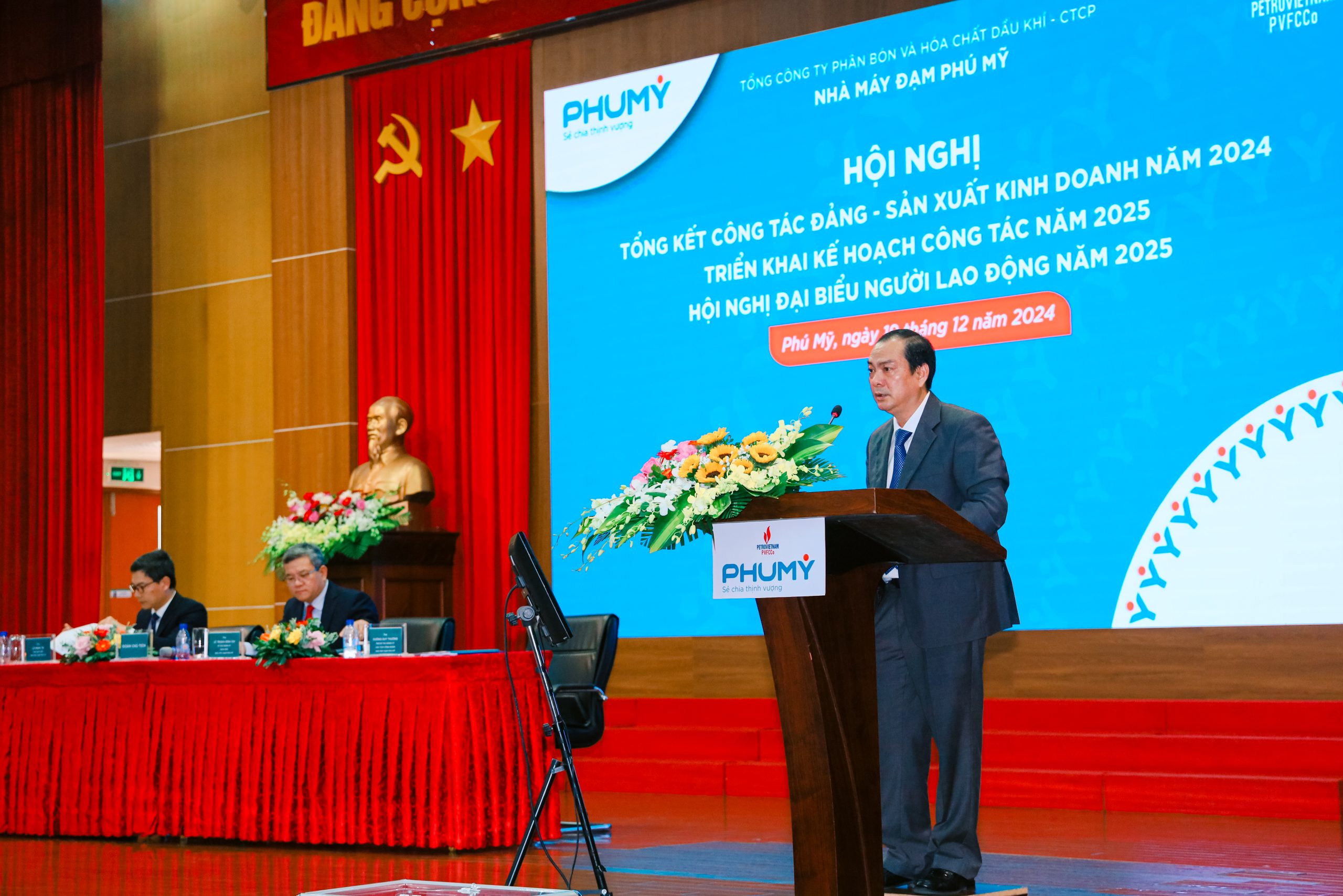 Vào ngày 19/12/2024, Nhà máy Đạm Phú Mỹ tổ chức Hội nghị tổng kết công tác Đảng – Sản xuất kinh doanh năm 2024, triển khai kế hoạch năm 2025 và Hội nghị người lao động. Tham dự Hội nghị, về phía lãnh đạo Tổng công ty Phân bón và Hóa chất Dầu khí (Phú Mỹ) có đồng chí Nguyễn Xuân Hòa– Bí thư Đảng ủy, CT HĐQT TCT; đồng chí Phan Công Thành – Phó Bí thư Đảng ủy, Tổng Giám đốc TCT; đồng chí Tống Xuân Phong – UV BTV, Chủ tịch Công đoàn TCT; các đồng chí trong HĐQT, Ban TGĐ, các tổ chức Đoàn thể, các Ban chuyên môn của TCT, BGĐ NM Đạm Phú Mỹ cùng sự hiện diện của 212 Đại biểu được bầu chọn từ cơ sở.