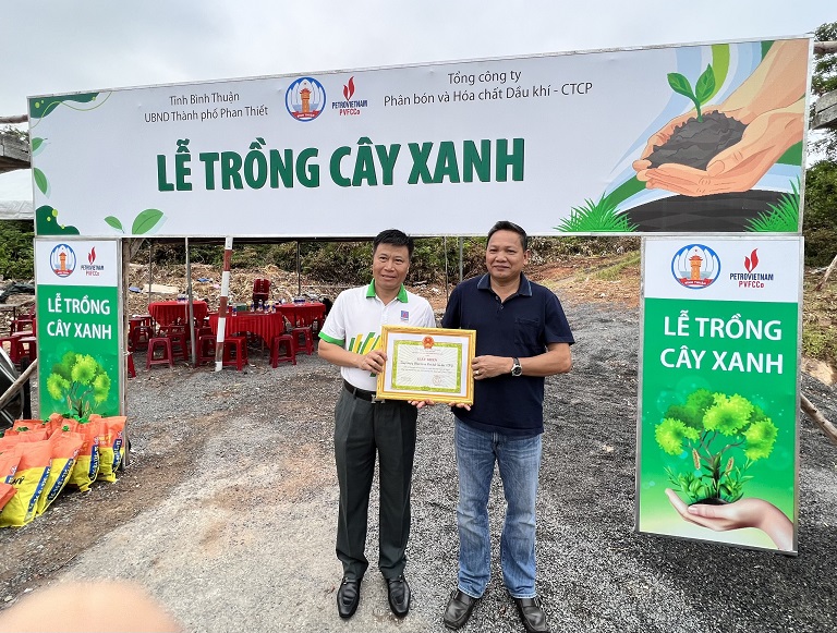 Vào sáng ngày 20/8/2023, Tổng công ty Phân bón và Hóa chất Dầu khí (PVFCCo) đã phối hợp cùng với lãnh đạo TP. Phan Thiết, tỉnh Bình Thuận tổ chức Lễ trồng cây xanh tại dốc Lầu Ông Hoàng, đường Nguyễn Thông, phường Phú Hài. Đây là hoạt động nằm trong chương trình triển khai chương trình trồng 3 triệu cây xanh trong toàn Tập đoàn Dầu khí Việt Nam và Thực hiện Kế hoạch số 1776/KH-PBHC ngày 02/11/2022 của Tổng Công ty Phân bón và Hóa chất Dầu khí về việc tổ chức triển khai chương trình trồng 300.000 cây xanh trong toàn Tổng Công ty giải đoạn 2022-2025.
