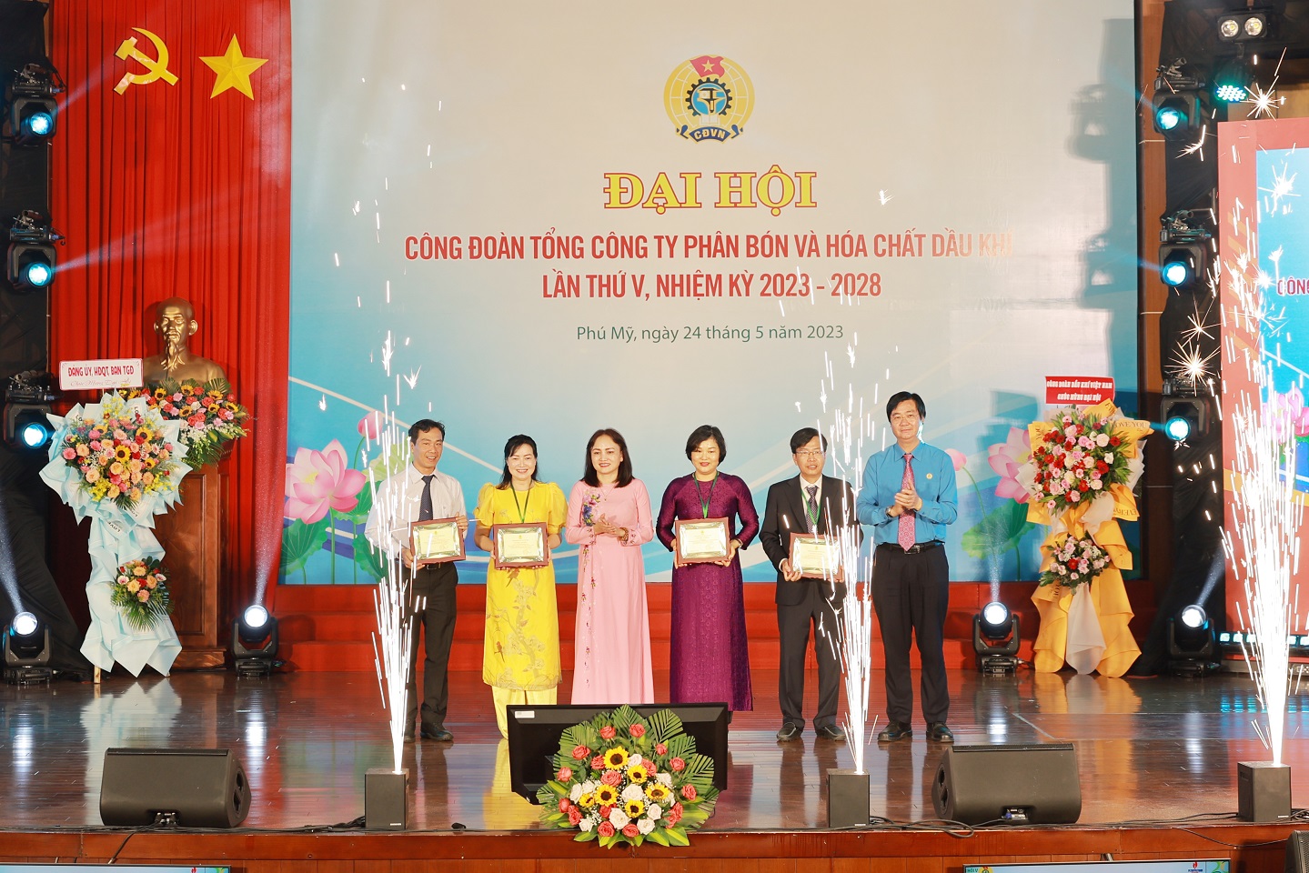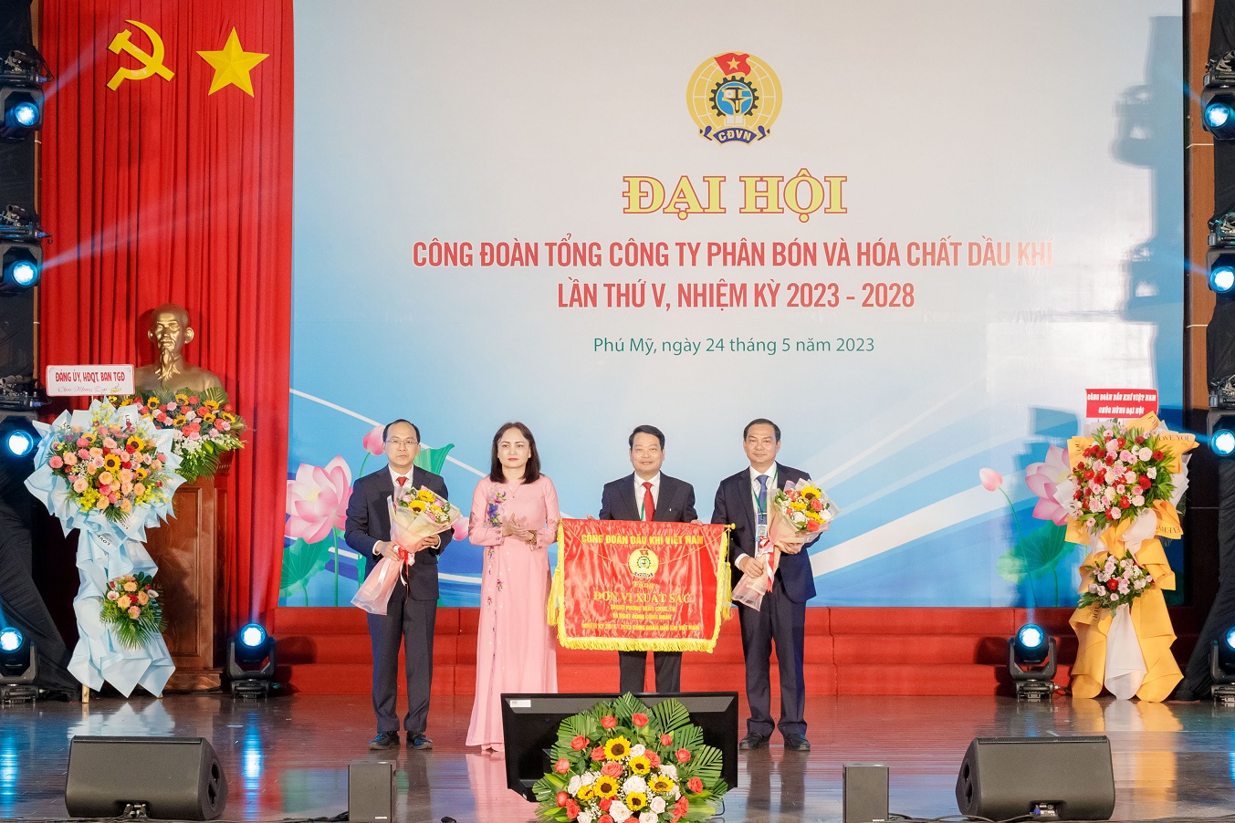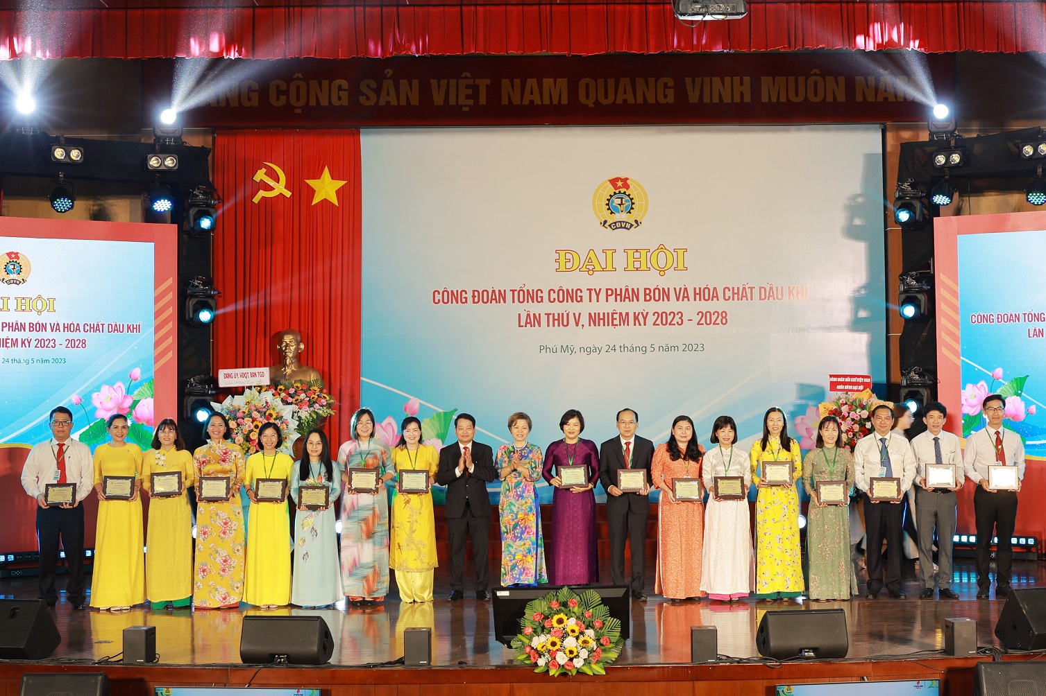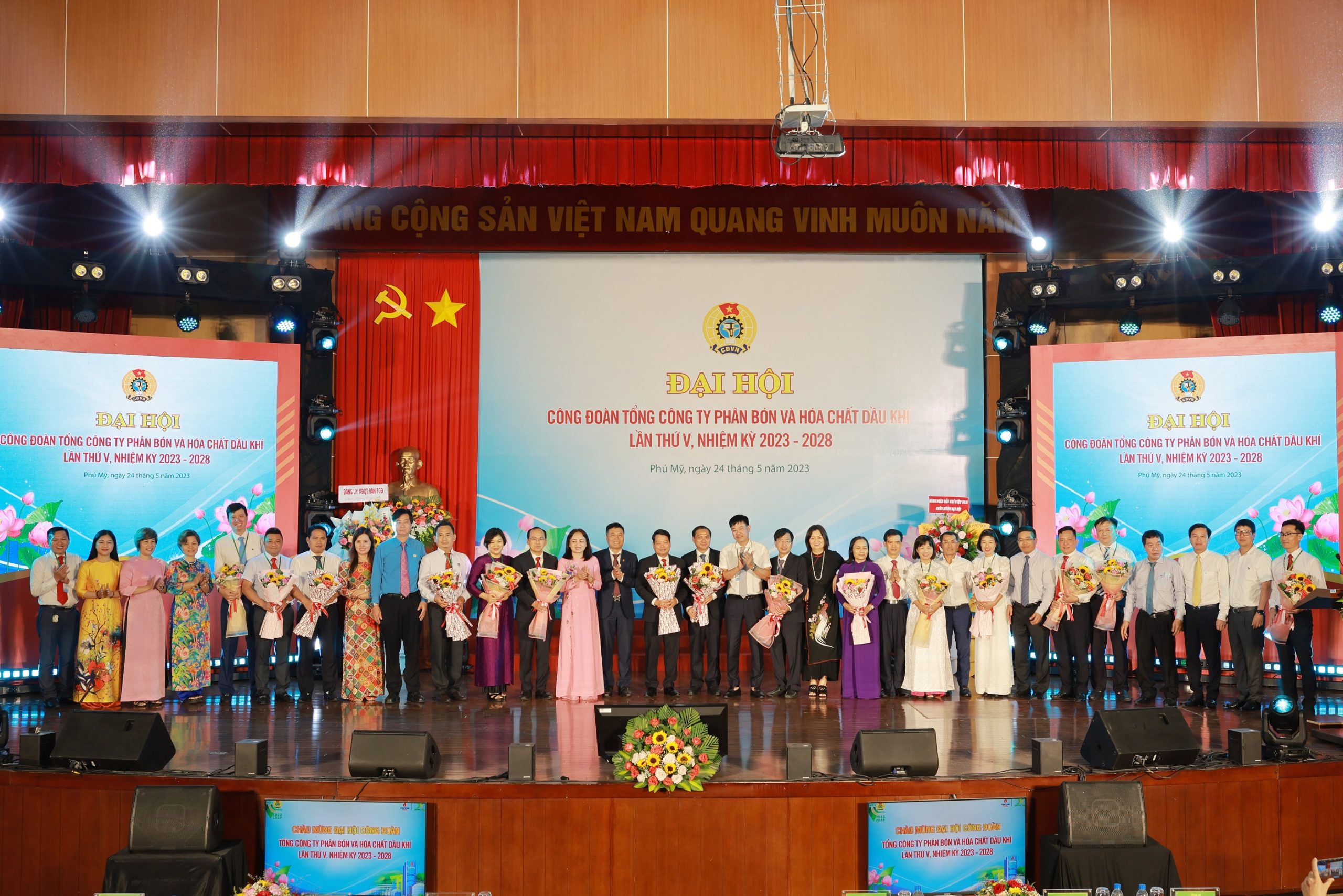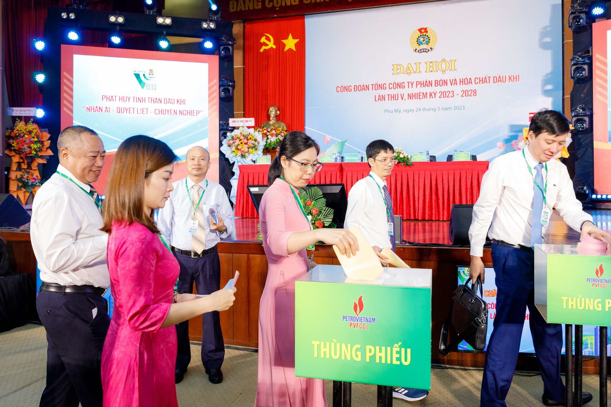 Vào ngày 24/05/2023, tại Hội trường Nhà máy Đạm Phú Mỹ, Công đoàn Tổng công ty Phân bón và Hóa chất Dầu khí (PVFCCo) đã tổ chức thành công Đại hội Đại biểu Công đoàn lần thứ V, nhiệm kỳ 2023 – 2028. Đến dự và chỉ đạo Đại hội, về phía Công đoàn Dầu khí Quốc gia Việt Nam có đồng chí Nghiêm Thùy Lan – UV BCH Tổng liên đoàn Lao động Việt Nam, Ủy viên BTV Đảng ủy Tập đoàn, Chủ tịch Công đoàn Dầu khí Việt Nam; đồng chí Nguyễn Mạnh Kha – Phó Chủ tịch Công đoàn Dầu khí Việt Nam cùng các đồng chí trong Ban Thường vụ, BCH Công đoàn DK, các đồng chí Lãnh đạo, đại diện các Ban/ VP Công đoàn DKVN và các đại diện Công đoàn các đơn vị thành viên của Tập đoàn. Về phía lãnh đạo PVFCCo có sự tham dự của đồng chí Hoàng Trọng Dũng – Bí thư Đảng ủy, Chủ tịch HĐQT TCT; đồng chí Lê Cự Tân – Phó Bí thư Đảng ủy, TGĐ TCT; đồng chí Trần Thị Phương Thảo – Phó Bí thư Đảng ủy, Phó TGĐ TCT, Trưởng các đoàn thể TCT, cùng các đồng chí trong Đảng ủy, HĐQT, Ban TGĐ, Ban KS và đại diện các Ban/đơn vị thành viên của PVFCCo, các đ/c nguyên Uỷ viên Ban Thường vụ Công đoàn TCT khoá IV. Đặc biệt, Đại hội có sự tham dự của 150 đại biểu đại diện cho trí tuệ, bản lĩnh, ý chí và nguyện vọng của toàn thể Công đoàn viên TCT.