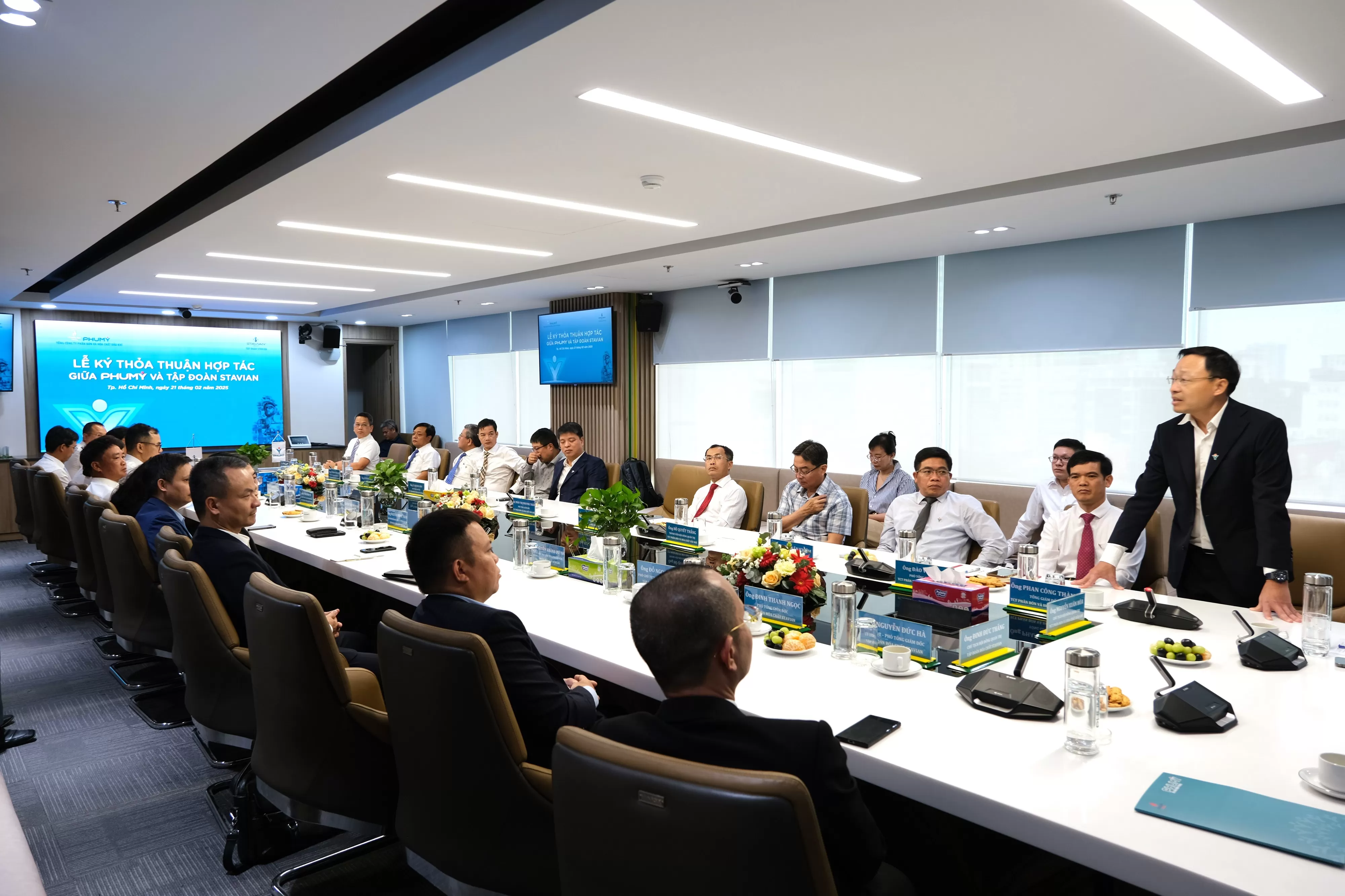 Hồ Chí Minh, ngày 21 tháng 02 năm 2025 - Tổng Công ty Phân bón và Hóa chất Dầu khí (Phú Mỹ, PVFCCo) và Công ty cổ phần Tập đoàn Stavian (Tập đoàn Stavian) đã chính thức ký kết Thỏa thuận hợp tác nhằm xúc tiến mở rộng hoạt động đầu tư và kinh doanh trong ngành hóa chất và các sản phẩm từ hạt nhựa. Chương trình Lễ ký kết được tổ chức tại trụ sở PHUMY Tower với sự tham gia, ký kết và chứng kiến của Ban Lãnh đạo hai đơn vị.
